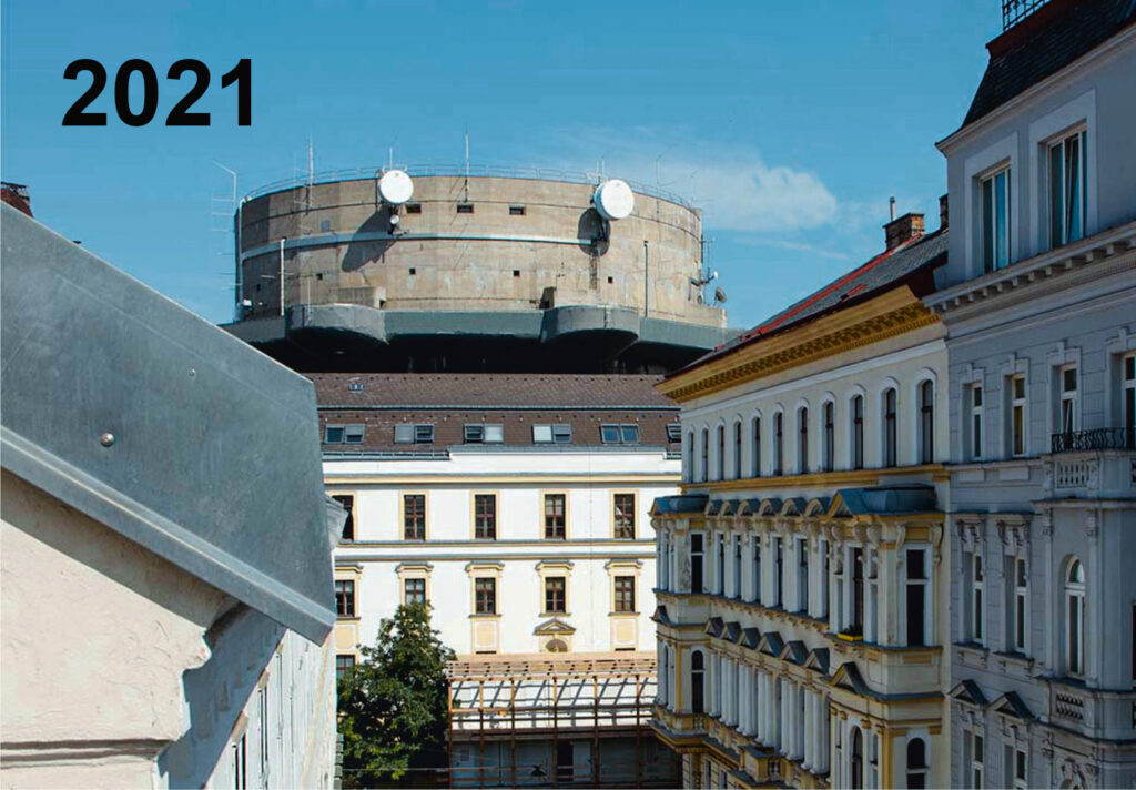 Im April 1945 änderte sich dann alles. Der Himmel über Wien dröhnte von durchgehendem Alarm. Vom Flakturm schossen die 8,8-cm-Flugabwehrkanonen waagrecht in Richtung Westen. Durch den Luftdruck bogen sich die Fensterscheiben, doch wie durch ein Wunder brachen sie nicht. Ich, mutiger Melder, stand tapfer in voller Uniform auf der Straße vor unserem Haustor, wenn auch ohne Auftrag. Von links, von der Stiftskaserne her, raste ein mit bewaffneten Soldaten überladener Kübelwagen vorbei in Richtung Westen. Mit einem Mal verstummten die Kanonenschüsse vom Flakturm, es wurde unheimlich still in der Lindengasse, nur von Weitem war Gefechtslärm zu hören. Kurz darauf kamen von rechts, aus dem Westen Wiens, die Soldaten zu Fuß zurück, benahmen sich aber äußerst merkwürdig. Sie sprangen von Haustor zu Haustor, verweilten dort etwas, um gleich wieder in der nächsten Nische zu verschwinden. Auffallend war, dass sie zwischenzeitlich die Uniformen gewechselt hatten. Diese waren nicht mehr olivgrün, sondern hatten eine dunkelgelb-braune Farbe.
