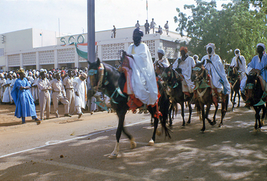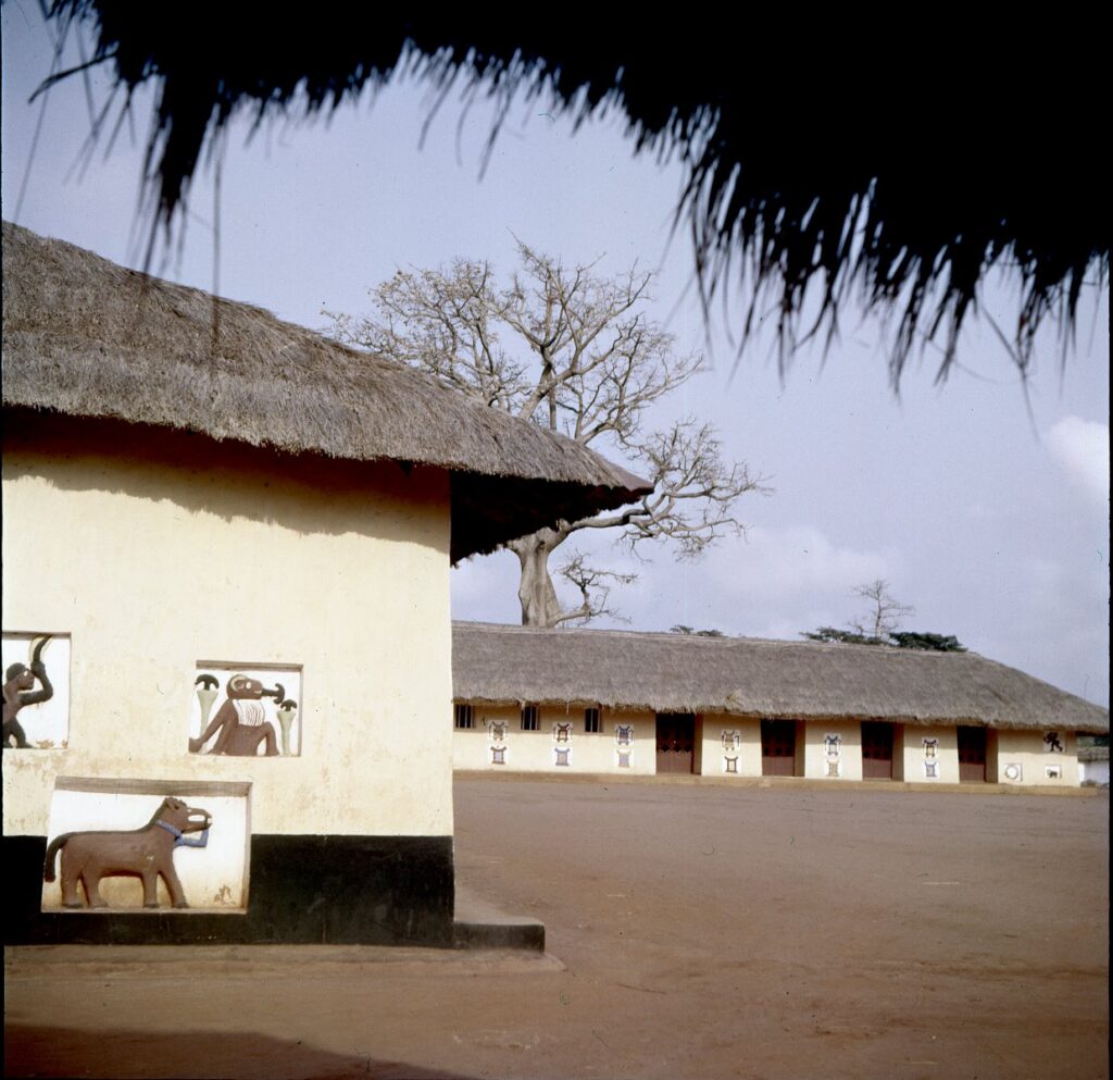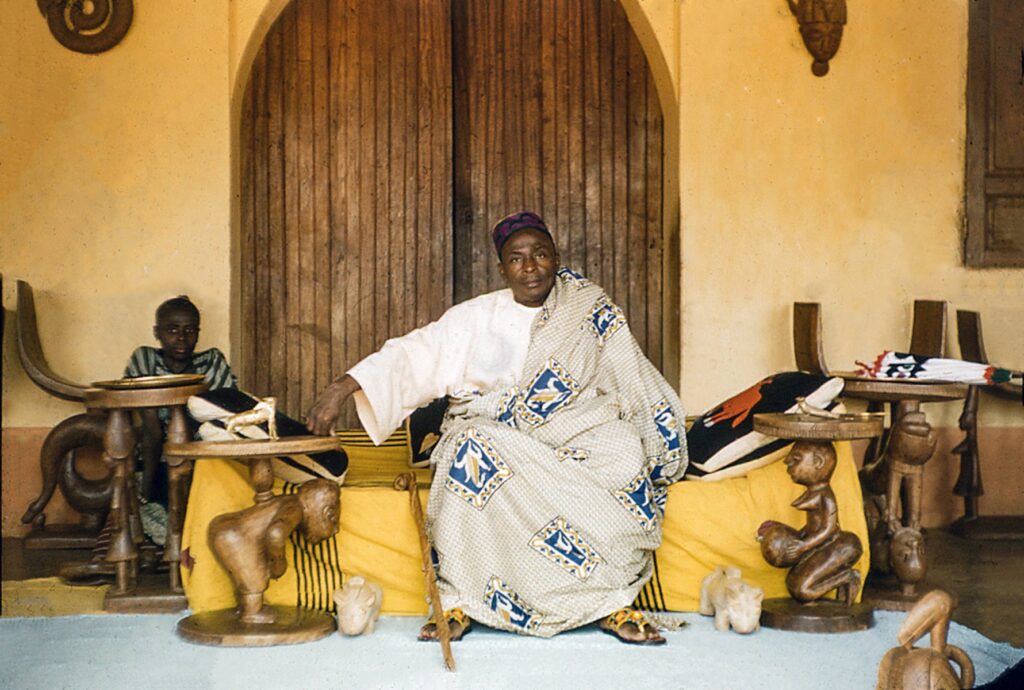 Die Wände waren mit prächtigen, farbenfrohen Reliefs geschmückt, die von einer vergangenen Pracht zeugten. Gegenüber lag erst der eigentliche Palast. Die Bogengänge, reich verziert in der ursprünglichen Tradition der afrikanischen Kunst, durchquerten wir zügig, hatten jedoch kaum Gelegenheit, die kunstvollen Details zu würdigen. Durch zwei geräumige Hallen folgten wir dem Prinzen, bis wir das Gemach des Königs erreichten. Beim Eintritt fiel der Thronfolger vornüber auf den Bauch, robbte einige Meter weiter und meldete seinem Vater den Besuch. Der, ein netter älterer Herr, saß entspannt auf einem geschnitzten Thron. In bemerkenswert einwandfreiem Französisch lud er uns mit einer einladenden Geste zum Näherkommen ein. Er beteuerte, dass das Hofzeremoniell zwar vorschrieb, niemand dürfe sich dem König aufrecht annähern, wir aber von dieser Regel ausgenommen wären. Diese Bemerkung trug er mit einer Mischung aus Würde und augenzwinkerndem Humor vor, was seine Autorität nicht im Geringsten schmälerte. Sein Gesicht strahlte, weil wir ihn mit Majestät ansprachen. Es schien, als sei er von der französischen Administration eine deutlich nüchternere Ansprache gewohnt. Als wir schließlich erklärten, dass wir aus Österreich kamen, freute er sich erneut. Er erzählte begeistert von einer Tagung in Paris, auf der er einige Regierungsmitglieder unseres Landes kennengelernt hatte. Ihre Freundlichkeit und ihre Manieren, so betonte er, hätten ihn zutiefst beeindruckt.