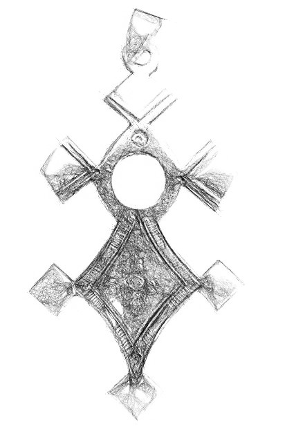 Er hat seine Tabuka, das zweischneidige Schwert der Tuareg neben sich liegen. Sie ruht in einer kunstvoll gefertigten, farbenfrohen Lederscheide, geschmückt mit metallenen Verzierungen. Ich versuche es auf Französisch und mache ihm ein Kompliment für diese prächtige Waffe und erzähle ihm, dass ich in Wien zwei ähnliche Exemplare besitze. Die habe ich vor langer Zeit, 1976 im Niger erworben, in einem Lager für Tuareg, die aus Mali geflohen oder vertrieben worden waren. Frauen boten mir damals die Schwerter an. Ihre Not war so groß, dass sie lächerlich wenig dafür verlangten. Ich habe ihnen mehr gegeben. Ein ungewöhnlicher Akt, weil in Afrika ist es normal um den Preis zu feilschen. Das wird erwartet, denn gefeilscht wird weniger um den Verdienst zu steigern, sondern aus sportlichem Vergnügen. Akamouk erinnert sich an diese Zeit. Er war damals noch ein Kind, doch hat er die Bilder großer Karawanen anderer Tuareg-Stämme, die in den Hoggar zogen, stets vor sich.