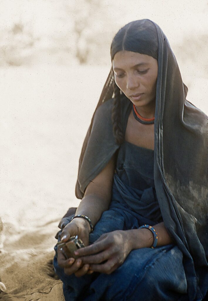 Er spricht grammatikalisch einwandfreies Französisch, allein das „R“ rollt statt am Gaumen vorne auf der Zunge. Auf meine Frage, wieso er die Sprache so gut beherrsche, erzählt er, dass man ihn in die Schule nach Algier geschickt hätte. Sein Vater war Offizier bei der von Frankreich gegründeten Garde Nomade und hatte erkannt, wie wichtig Bildung für einen Targi ist. Ich bin überrascht. Wie konnte sich ein Wüstenbewohner für seinen Sohn eine europäische Schulbildung leisten? Seine Antwort ist kurz und deutlich, mit einem feinen Lächeln zieht er seine Tabuka etwas näher zu sich heran. Welchen Vorteil vermag ihm diese Erziehung hier in der Wüste bringen? Er meint, er sei bei den Clans der Sahara recht angesehen und reitet von einer Familie zur anderen. Manchmal würde er bei einer heiraten, um nach einiger Zeit wieder weiterzuziehen. Es ist mir bewusst, dass Hochzeiten gar nicht wenig kosten, und bei einer Scheidung, welche fast stets von der Frau verlangt wird, das gesamte Vermögen und die aus der Verbindung hervorgegangenen Kinder bei der Mutter bleiben. Um sich das leisten zu können, muss er doch höchst wohlhabend sein? Auch diesmal erhalte ich keine Antwort. Nur ein feines, geheimnisvolles Lächeln spielt auf seinem Gesicht. Da dämmert mir, er wird halt die alte Tradition der ehemals räuberischen Touareg weiter fortführen und sich das, was er braucht, ohne Umstände aneignen.