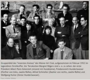 Bedeutende Pläne für eine geregelte berufliche Zukunft interessierten mich damals herzlich wenig. Stattdessen wollte ich, wahrscheinlich wegen oben erwähnter Erbanlagen, in die sich nach dem Krieg neu formierende Wiener Kulturszene. Was sich dadurch manifestierte, dass ich alle G‘schnasfeste der Kunstakademie, sowie regelmäßig den sich im „Strohkoffer“ zur Unterhaltung versammelnden Artclub besuchte. Sie wurden schnell meiner zweiten Heimat.