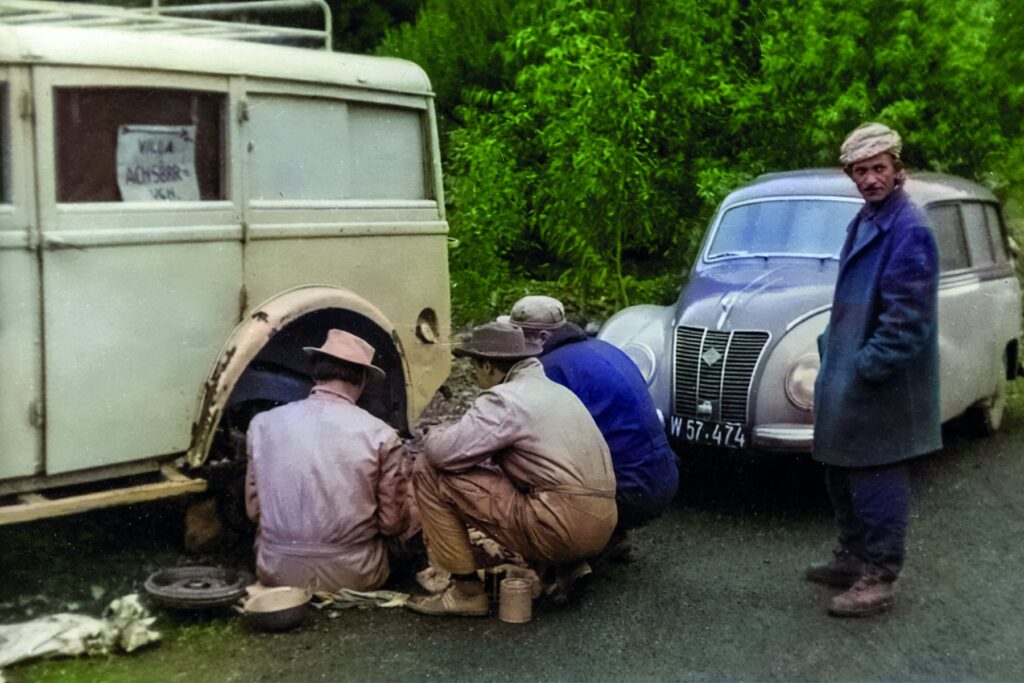 Ohne jeglichen Zwischenfall, als wäre er zufrieden, Europas Straßen wieder unter seinen Rädern zu haben, brachte der treue IFA F9 die Expeditionsteilnehmer an die heimatliche Grenze. Die Route führte quer durch halb Deutschland, da wir aus zoll- technischen Gründen die vom Osten kontrollierten Gebiete zu meiden hatten. Erwartungsvoll freuten wir uns darauf, heimzukommen. Doch die Herzlichkeit der österreichischen Zöllner war bei unserem Anblick eher zurückhaltend. Während sich meine drei Mitstreiter im Zollgebäude um gute Stimmung und eine schnelle Abfertigung bemühten, hütete ich im Auto sitzend das Gepäck. Nicht nur dieses. Joko, unser äffischer Begleiter, musste stillgehalten und neugierigen Blicken verbogen werden. Da wir keinerlei Beruhigungsmittel in der Apotheke mitführten, wickelte ich den erstaunlich geduldigen kleinen Kerl fest in eine Decke. Kein Laut kam von ihm, als ich das gesamte Paket mit den Füßen auf dem Boden des Autos fixierte. Dieser war mit verschiedenen Muscheln und getrockneten Seesternen übersät, die wir bei unseren Besuchen am Meer gesammelt hatten.
